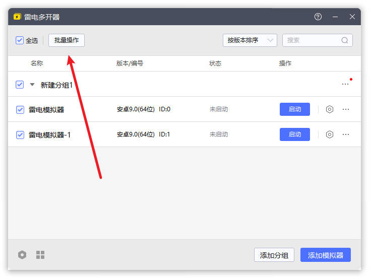 方法一:利用“雷电多开器”自带的批量操作(最推荐小白)